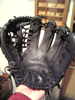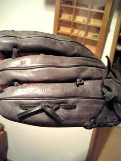 発見当初は外野用グラブの割には小振りで、オマケにポケットが浅く捕球困難なグラブだったのですが、改造して随分使いやすくなり、今ではキャッチボール用グラブとして重宝しております。