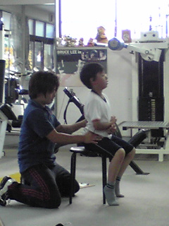 と、今度は倅の腹筋周りを押したりもんだりしてます。