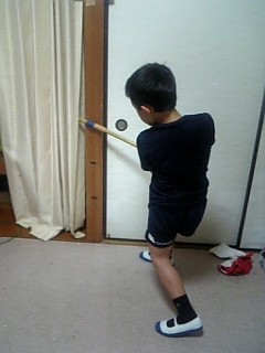 随分昔にホームセンターで買ったジップヒットを、野球部屋の奥底から倅が見つけ出して来て妹と遊んでました。