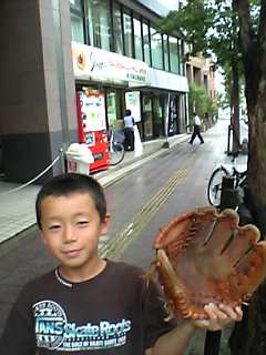 倅は待っている間、球界では有名人という支店長のオジサンから捕球の仕方を習っていました。そして、手入れが出来上がってきたグラブを見たオジサンはそれを手に取ると、どこを守っているのか?と聞きます。主にサードかセカンドですと答えますと、