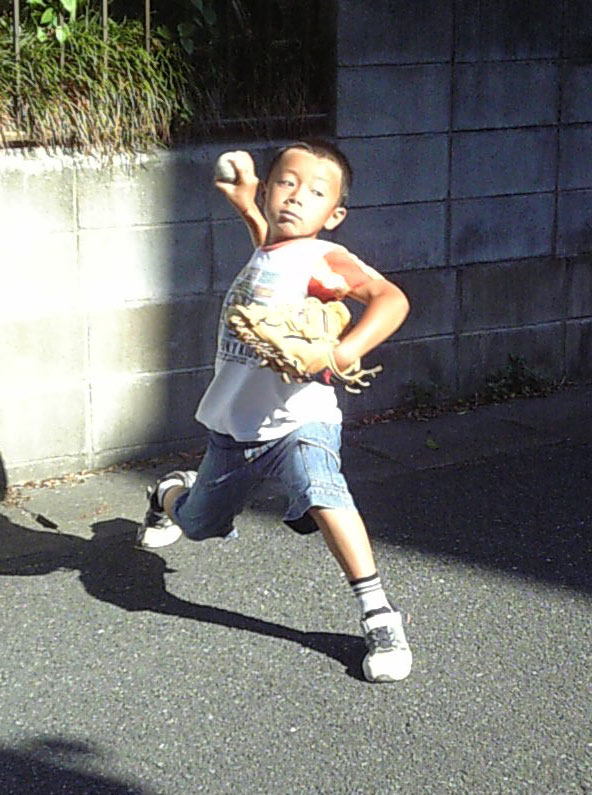 到着すると早速倅相手にアップを済ませてマウンドに。まさか倅相手に投球練習する日が来ようとは。