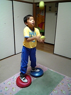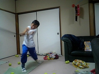 うちは、妹たちが前日から実家に泊まりに行ってて邪魔する人間がいませんから、練習し放題。折角ですから終日自宅で特訓することに。時間はたっぷりありますので、たまには何も考えずとにかく数を打たせてみようと思いまして、トスマシンを使って打ち込みをやりました。