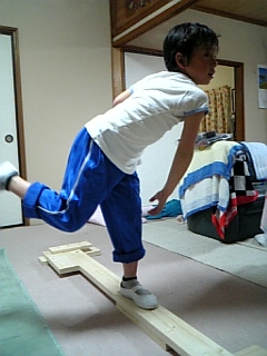 ダルビッシュが中学時代に平均台の上でシャドウ(だったと思います)をやっていたと何かで読んだことがありまして、かねがねやってみようと思っていたんです。中学で。