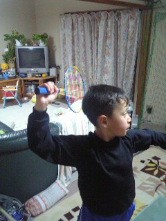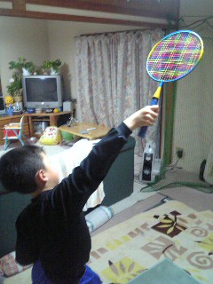 これは100均で買ってきた短いバドミントンラケットで、普通のやつの半分くらいの長さです。