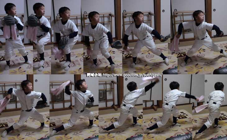 ボールを投げるときもこの動作ができればいいのですが、どうしても投げることに意識がいっちゃうので、別人になってしまうのが課題ですが、まぁ、シャドウだけでもちゃんとできることがあるのであれば、小学3年にしてはいい方かなぁなんて思います。