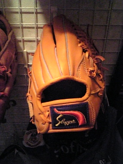 息子の手にちょうどよかったのはミズノ社製で、本人もお気に入りだったのですが、皮が薄くすぐにヘタりそうだし、ポケットが浅いので下手な息子には向かないので、かわいそうでしたが強制的にボツ。ローリングスのやつは柔らかすぎてこれもすぐにヘタるのでボツ。消去法で残ったのがスラッガーで、息子には大きすぎてちょっと重すぎだったのですが、捕りやすさと耐久性からこれに決定。
