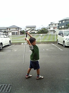 仕方は剣道の素振りそのまんまです。