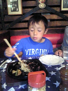 一応ですが、級をとったんで、ステーキをご馳走してあげました。