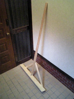 一昨昨日でしたか、試合前にホーム周りをチョコッと均そうとしたときに、鉄のトンボを使って均そうとしたのですが、あまりの操作性の悪さにストレスが溜まりまくりでしたので、それならと自分で作ってみました。